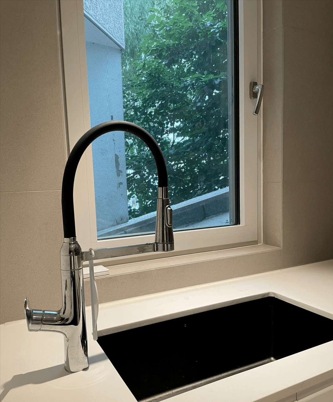 好比紧贴墙壁的家具若是附近有门套,下半截设想成死扇窗户,从而导致了设想很完满,内开窗要预留室内的空间,用起来翻车的环境。好比内开窗打开时会被天花板上凸出的晾衣架盖住,只能开一半无法开展通风十别离扭。一般环境下我们厨房城市利用鹅颈水龙头,