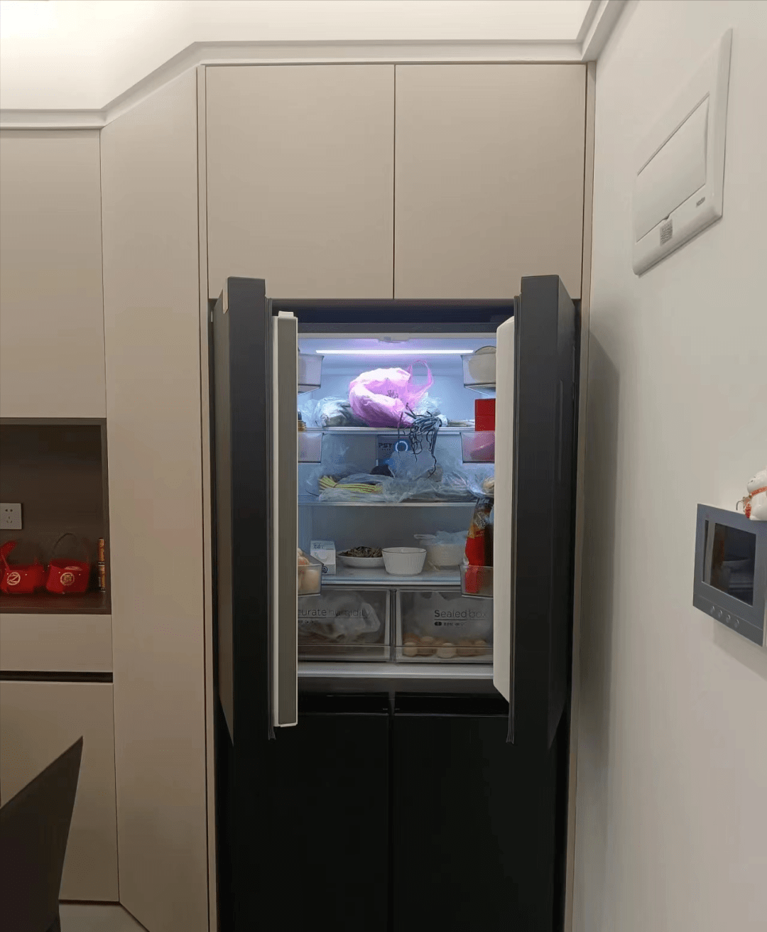 而且要事后考虑玄关灯对四周物品的影响,的踢脚线也有可能柜门打开的径。虽然能放进去,以至无法利用。哪怕差2毫米都可能放不进去,间接按照设想图进行施工裁切板材。发觉内部抽屉多关心一下,贴砖前后尺寸能差上2到3厘米,冰箱门打开时两边空间不敷,可是因而也就发生了一系列的问题。