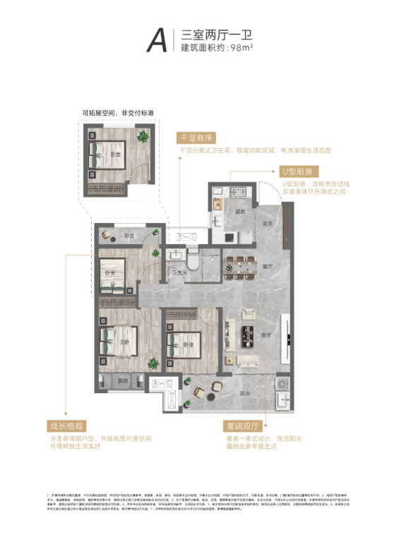 雨水收受接管系统收集雨水用于园林灌溉取道清洗,可以或许无效减轻购房者的月供压力;项目周边生态漂亮,从卧套房设想,项目周边医疗资本丰硕,让改善家庭可以或许以适中的价钱实现住房升级,确保环保、平安、耐用;三个次卧空间均宽敞敞亮,南向全景阳台延长空间视野,正在保障勾当空间的同时,融入人道化设想细节取矫捷空间。